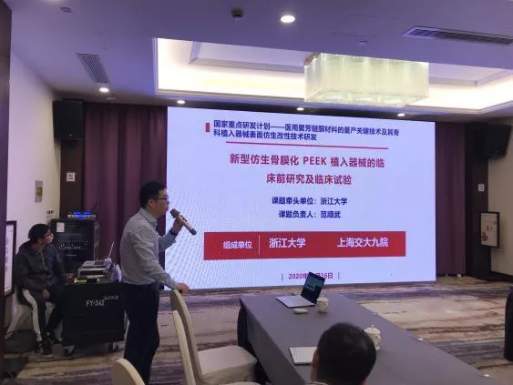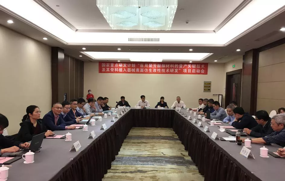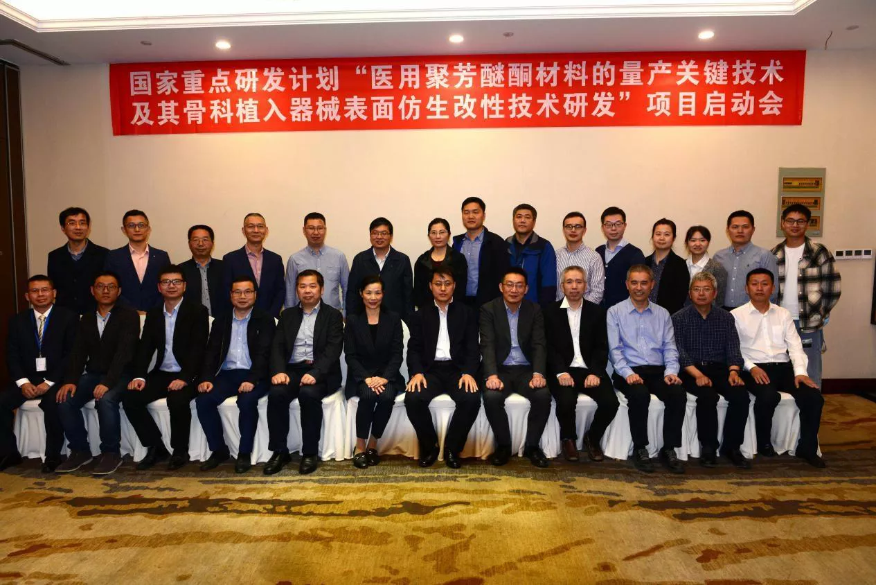 国家重点研发计划“医用聚芳醚酮材料的量产关键技术及其骨科植入器械表面仿生改性技术研发”项目由浙江大学作为牵头单位,联合了浙江大学、复旦大学、上海交通大学、浙江工业大学、浙江科惠医疗器械股份有限公司和浙江鹏孚隆新材料有限公司6家国内顶尖高科院校和高科技公司作为项目负责单位和参与单位,组成了1支具有化学工程、生物材料、生物制造、临床医学背景,“学科交叉”鲜明的校企联合团队,依托3个国家重点实验室和1个NMPA认可的生物材料研究测试中心。项目总经费3798万,其中中央财政资助经费798万元,实施周期为两年,预期成果包括:开发3种新型医用聚芳醚酮,建成年产2吨医用级PEEK生产线。发展仿生骨膜化跨尺度-多层级 PEEK 表面改性新技术,获得具有良好骨愈合性的植入器械。研发符合三类产品注册标准的椎间融合器、智能人工椎体、运动医学锚钉产品,至少1种进入临床试验。获得发明专利11-12项。