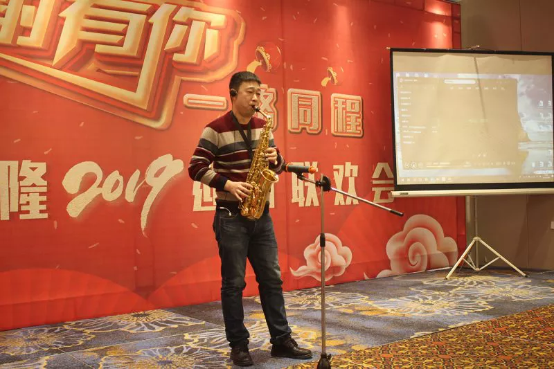 晚宴正式开始后各部门员工各展所长,为大家带来了精彩绝伦的视听盛宴。其间贯穿了唯美的中国风笛子演奏,令人陶醉的萨克斯独奏,点燃全场的一曲粤语歌曲《最爱的人》等,高潮迭起,令人目不暇接。表演期间穿插了几个互动小游戏,极大地调动了员工们的热情,随着三等奖、二等奖、一等奖的抽取,将现场的氛围推向又一个高潮,台下一片欢声笑语,昔日的汗水都化为杯中的美酒,大家举杯共饮。