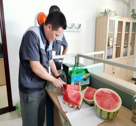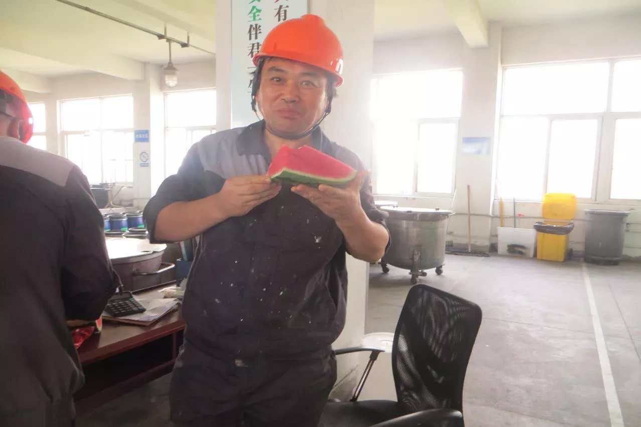 入夏以来,随着天气气温的不断升高,为了切实做好一线员工的防暑降温工作,公司提前准备了体温计、藿香正气水、风油精等防暑用品,食堂每天熬制绿豆汤、银耳汤给一线员工解暑。另外,公司工会也一直坚持开展每周二次送清凉慰问活动,发放西瓜和清凉饮料,通过这一系列举措,确保一线员工的防暑工作做到实处。