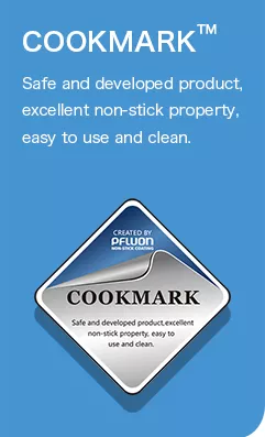 COOKMARK 系列,PFLUON通用级氟树脂不粘涂料,涂层系统为单层或双层。该系列涂层致密, 不粘性好,易于清洁;性价比出色,产品实用性强,可以用于铝、合金、不锈钢等各种基材,是应用范围较为广泛的不粘涂层产品。