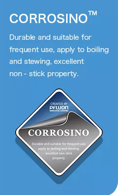 CORROSINO 系列手感细腻、具有光泽,该产品的突出特点是不粘性能优异、耐化学性好。产品定位于中高档炊具內涂,应用领域广泛,尤其适合炖、煮器具。