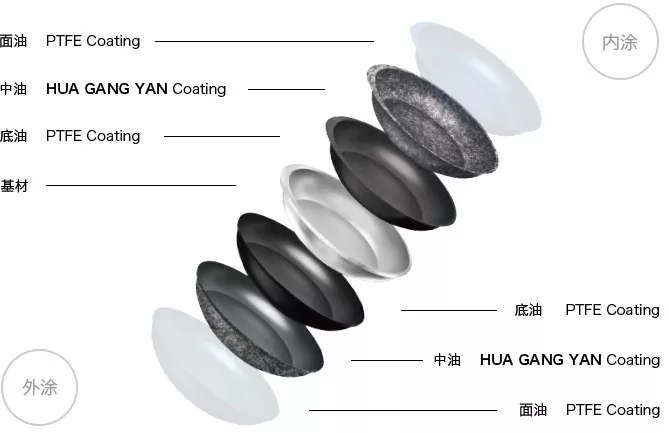 HUA GANG YAN-Coating是PFLUON研发团队基于真实花岗岩颜色,质感而研发出的新型不粘涂层产品,涂层具有硬度高、耐磨损以及良好的不粘性等优异特点。并不是我们吝啬于颜色的外延,而是我们无意于去创造一种不真实的色彩,团队本着对真实事物的完美还原,严谨的把控着每一次的试验与调试,每个作品专注提取自然原色。很可惜,目前,我们只找到了9款纯正花岗岩纹理,研发后并依次命名为:黛蓝灰、地焰红、海青蓝、骆驼黄、琉璃黄、咖啡棕、凡戴棕、英国绿、秋银杏。