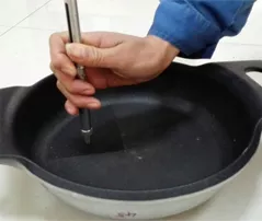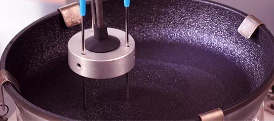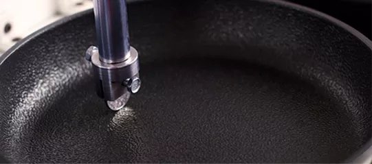 涂层预处理采用纳米碳纤维高分子聚合物,具有高硬 度、高韧性,成膜凸凹有致,面涂层采用改性PTFE涂层,通过高温、链接、成膜,形成高强度、优异不粘 性的致密涂层。